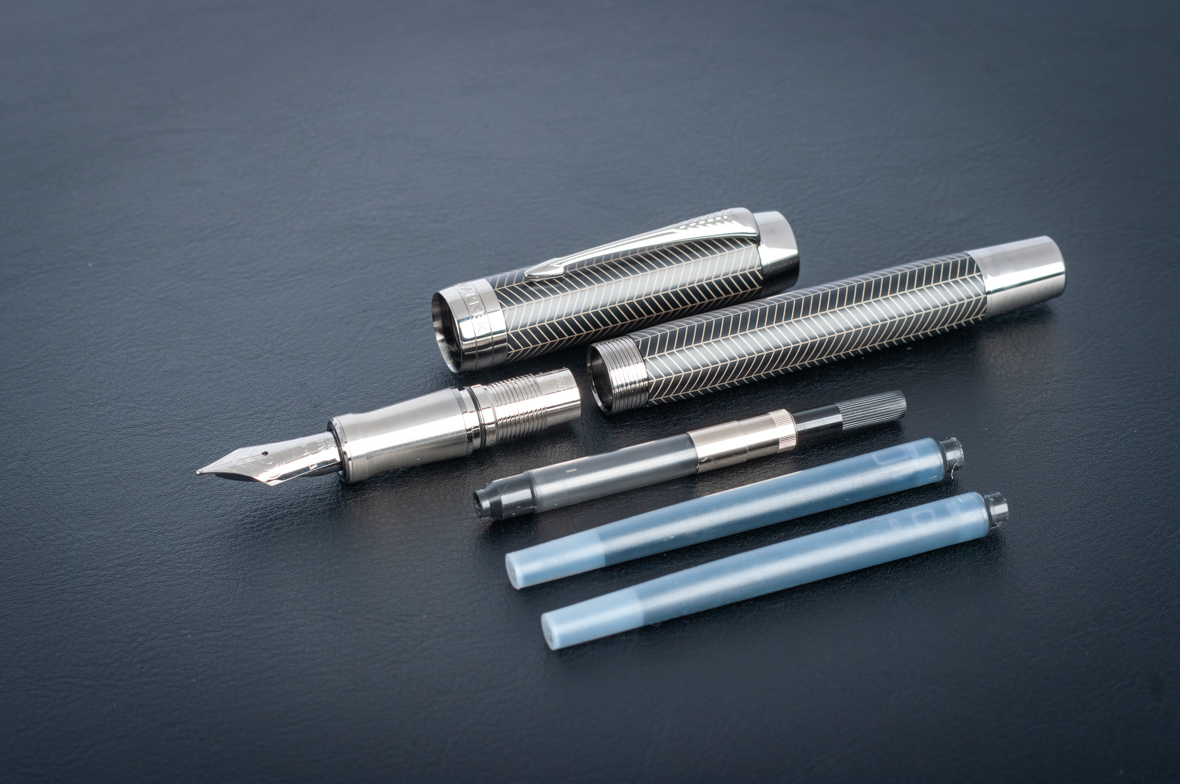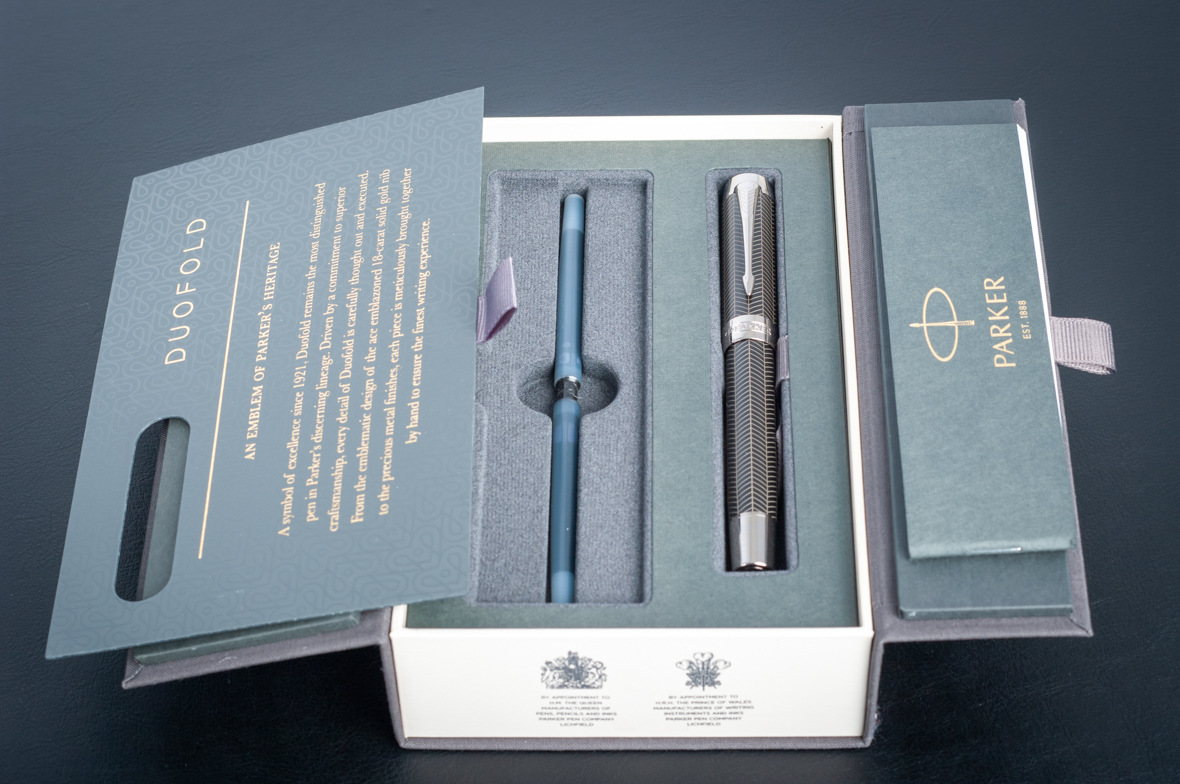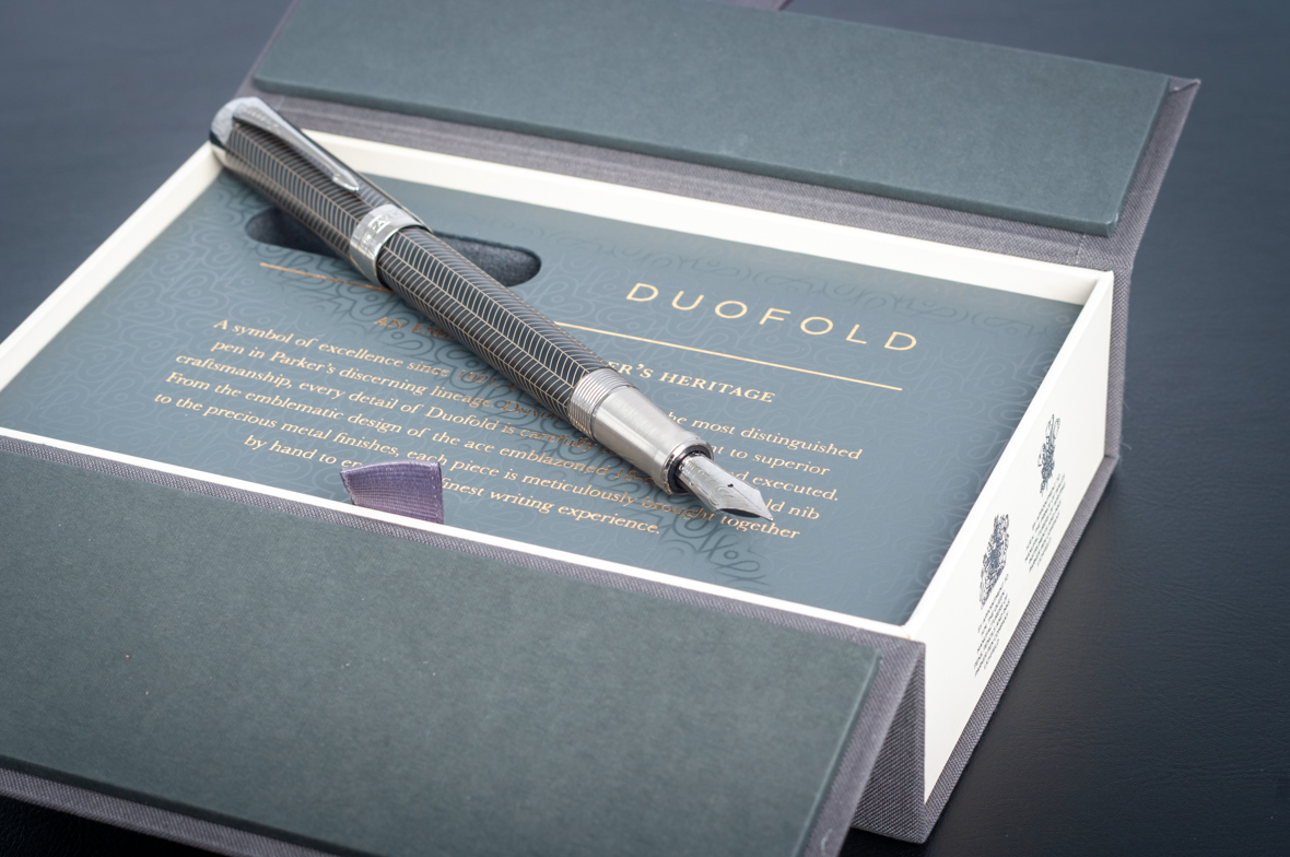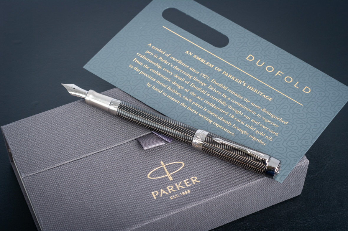 Перьевая ручка Parker Duofold Prestige Centennial Black Chevron CT от официального дилера Parker в Батайске. Вы можете дополнительно заказать гравировку, которая подчеркнет Вашу оригинальность и придаст памятность статусному подарку. Все ручки Паркер поставляются в фирменном футляре.