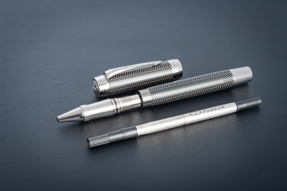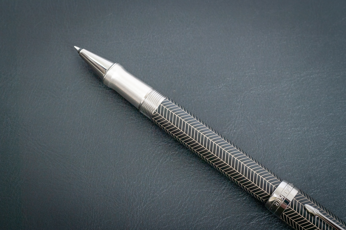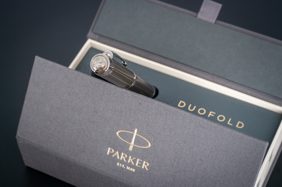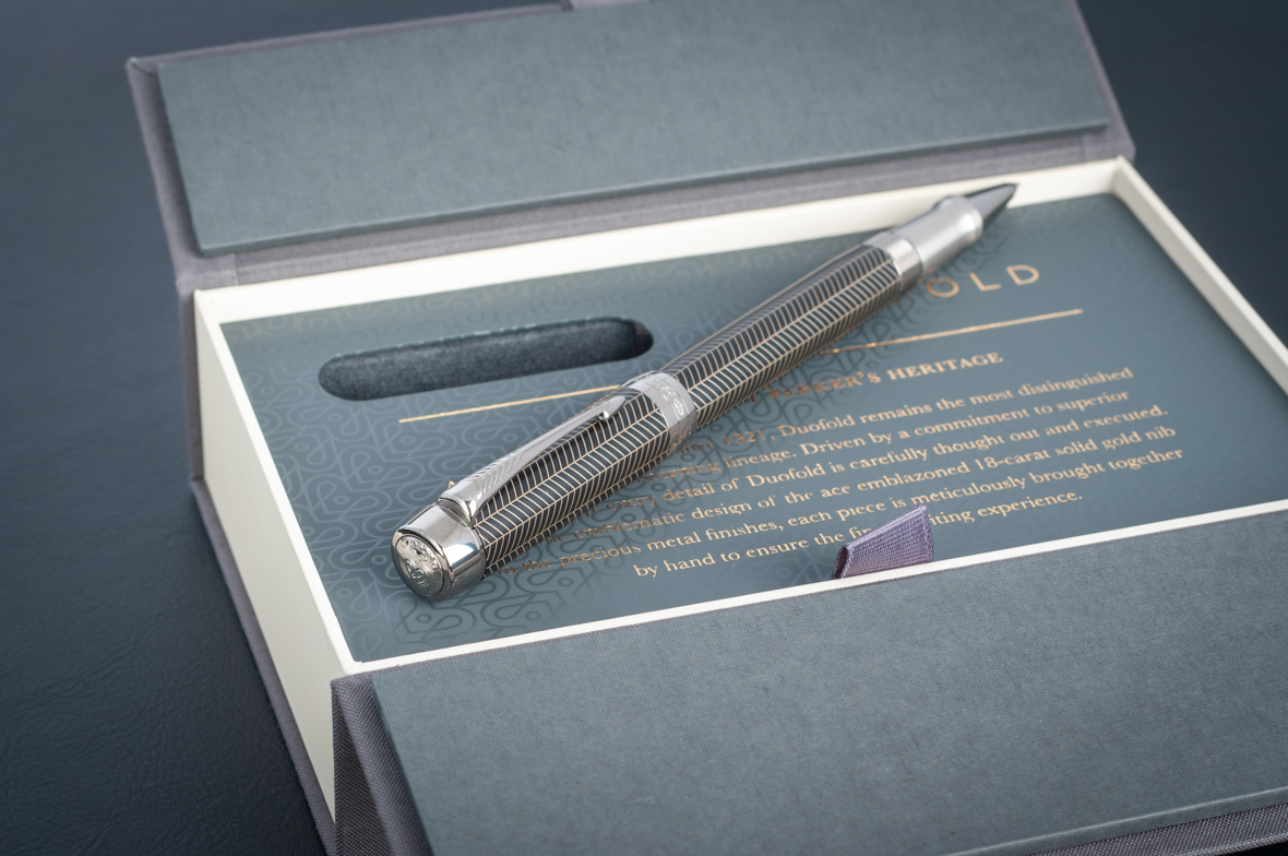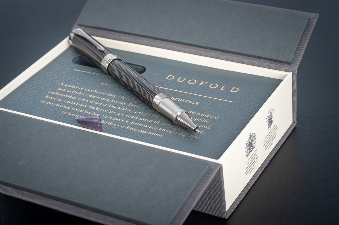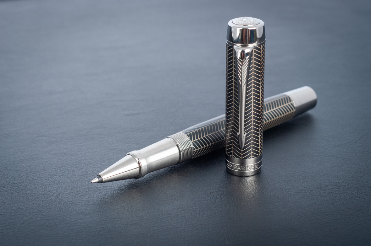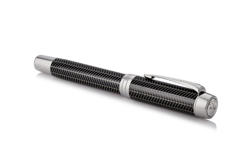 Ручка роллер Parker Duofold Prestige Centennial Black Chevron CT от официального дилера Parker в Батайске. Вы можете дополнительно заказать гравировку, которая подчеркнет Вашу оригинальность и придаст памятность статусному подарку. Все ручки Паркер поставляются в фирменном футляре.